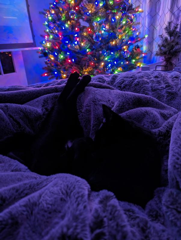 The XL Chinchilla Throw Blanket has quickly become a family favorite in our home. Its plush texture and the added foot pocket are absolute game-changers, providing a level of comfort that's hard to beat. The thickness and quality of the blanket are outstanding, making it our top choice for chilly evenings and lazy weekends. However, we did find that when attempting to share it between two adults and our cats, it fell a bit short. We wish it were just a tad larger to accommodate everyone comfortably when we are snuggled up on our giant bean bag. If you're in search of a luxuriously soft throw with a unique foot pocket feature, this throw is a winner. If they ever make a larger one to better fit the giant bean bag this would be the perfect blanket!