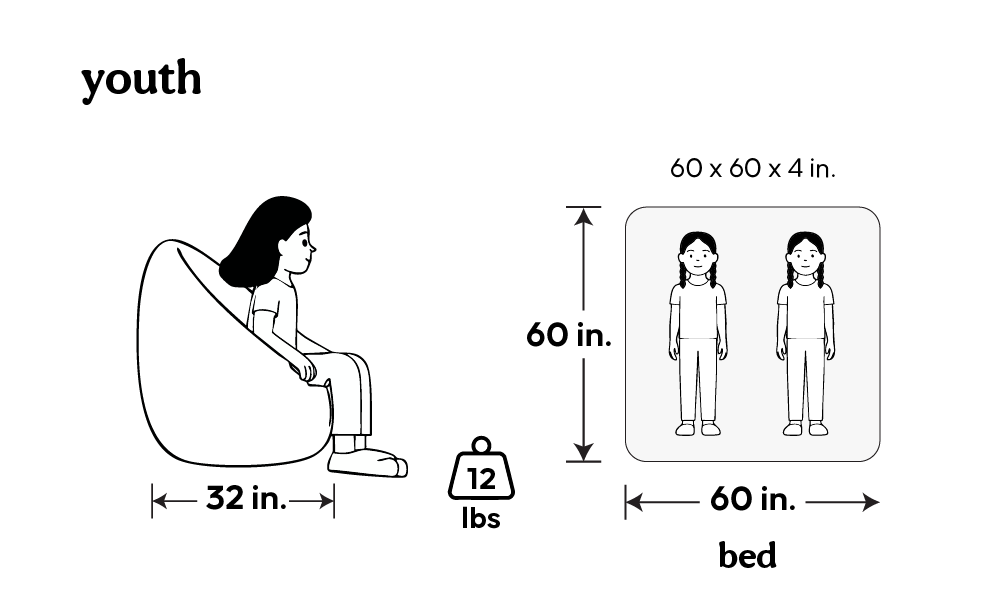 - CHAIR BY DAY, BED BY NIGHT: Effortlessly converts from a stylish, comfortable bean bag chair into a standard Youth-sized bed, providing a perfect sleeping solution for guests.